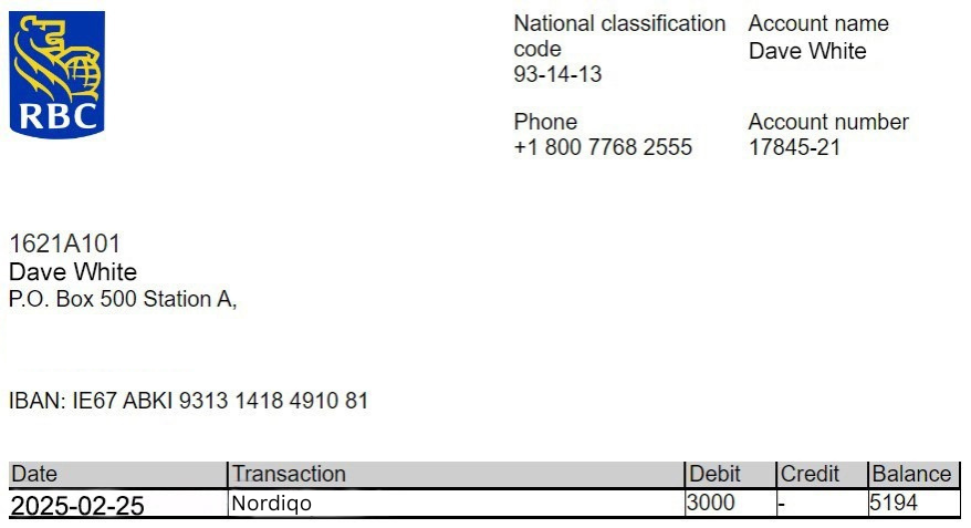 I have attached the bank statement: